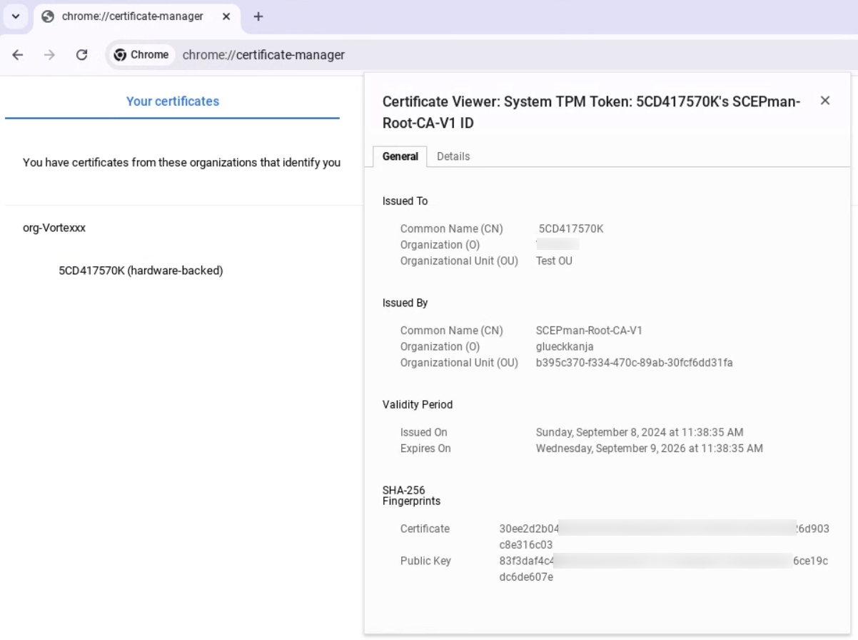 6. To check for this certificate, in your Chromebook navigate to **chrome://certificate.manager** > **Your certificates.**