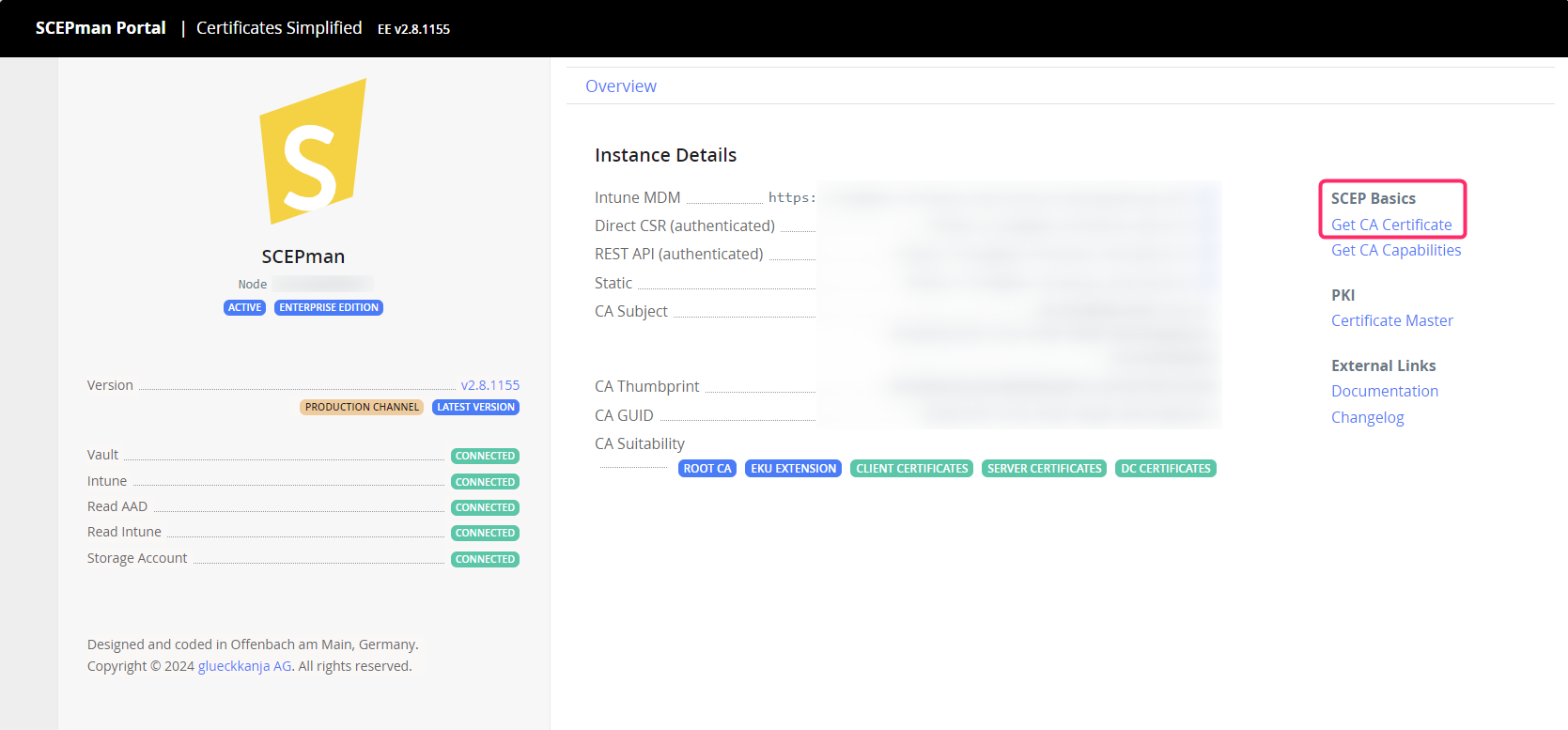 1. Download the root CA certificate from your SCEPman website by clicking on the **Get CA Certificate** link.