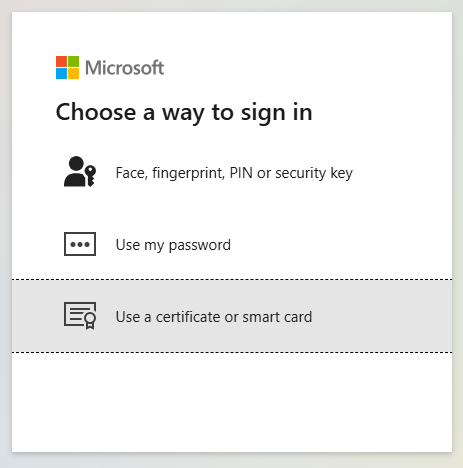 With the configuration being in place, a user can select *Use a certificate or smart card*: